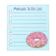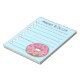 List-style note pad design features an original marker illustration of a pink frosted doughnut with sprinkles, on a blue background with multicolored text. Great for any junk food junkie! Just personalize with your information.