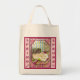 Handy tote bag for Easter Eggs, Gardening Tools, etc. features an original digital painting by Leslie Sigal Javorek of a whimsical scene through a dark pink framed floral shop window of violets planted in a ceramic bunny planter. Flanked by 3 custom text fields that default to "Spring Has Sprung!!".