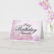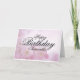 A very pretty and feminine pink floral birthday card. The pink flowers are combined with a traditional and fancy font with lots of flourishes. Including her name on the card will make her feel very special. You can also change any of the other text as well. The flowers are clustered in the bottom left of the birthday card. The design becomes lighter and airier as it moves toward the upper right. The result is a beautiful design that will show her how important she is to you.