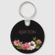 Cute keychain with black background. Pink flowers add to the sweetness of this personalized girly keychain.