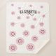 A photograph of a single flower was stylized for this cozy pink and white sherpa blanket landing somewhere between vintage and whimsical. The text can be personalized, and there are available matching pillow options to create a comforting set for travel or home. Suitable for a wide range of ages.