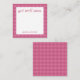 Personalized stationery enclosure notecard with a pink gingham pattern in notes of dark deep and vibrant rose pink with the sentimental words "get well soon". Tuck it into a flower bouquet or meaningful gift. These minimal flower shop inspired enclosure cards bring a retro kitchen vibe to your most thoughtful moments.