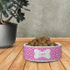 Pamper your precious pet with this personalized timeless pink gingham with paws patterned pet bowl! Personalize it with your dog's name in the bone.