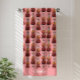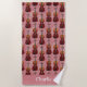 This beach towel design is complete with a seamless pattern of violins set against a glittery pink background. There is a place to add your name at the bottom of the towel.