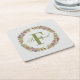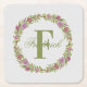 Personalized Pink Green Floral Last Name Monogram Square Paper Coaster