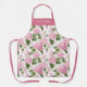 Delight the cook in your house with this personalized apron, featuring a pattern of pink hydrangea blossoms and green foliage. Near the top, the words "[Your Name's] Kitchen" or other text of your choice appear in editable handwriting script on a pink background.