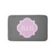 Classy grey and pink quatrefoil monogram microdry non slip bath mat. Chic bathroom home decor accesory. Grey luxury monogrammed design. Stylish typography for personalized name initial letters. Cute wedding or birthday gift idea for newly weds, bride and groom, husband and wife, engaged couple etc. Pretty interior decoration for elegant bath room. Available in small, medium and large big size. Customizable background colour. Also nice for spa or beauty salon.