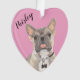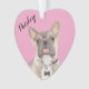 Personalized Pink Heart Blue Fawn Tricolo Frenchie Ornament