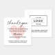 Thank your customers for supporting your small business with these square custom business cards. Design features modern "Thank You" script design with heart accent, a pale pink background heart (colour can be updated), and wording that can be completely personalized with your name, business name, website, and other information. Additional wording can be included on the back of the card, along with space to include a logo, QR code, or other image.