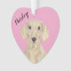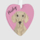Personalized Pink Heart Smooth Cream Dachshund Ornament
