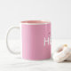 Start your day with a smile using this stylish pink mug featuring the word "Hello" and your custom name. Made from high-quality ceramic, this mug is perfect for coffee, tea, or any beverage of your choice. Its vibrant design adds a personal touch to your morning routine, making it a great gift for friends, family, or yourself. Whether at home or the office, enjoy every sip in style!