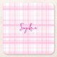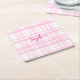 Personalized Pink Plaid Paper Coaster with Name
