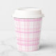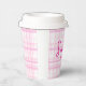These personalized pink plaid paper cups feature a soft aesthetic checkered background with a stylish custom name, making any party setup look cute and coordinated.