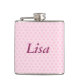 The perfect flask for those looking for something truly unique. This flask fits perfectly in your pocket or purse. Flasks make awesome gifts for any occasion...or for yourself! Perfect for bridesmaids, groomsmen, work friends, birthday presents, guys gifts, women gifts, stocking stuffers, and much more! Add your name in the field provided. Change font style, size, and colour. If you want it without a name be sure to clear the text.