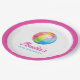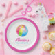 These personalized paper plates are part of the Waterpark Splash Birthday Collection. Featuring a soft pink rim and a playful pool ball illustration in the center, this design creates a sweet and cheerful look perfect for girls’ pool parties and summer birthdays. Customized with the birthday child’s name, these plates are ideal for waterpark-themed celebrations, pool parties, and colorful summer events. A fun and stylish tableware detail that completes any girls’ party setup.