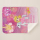 Any little princess would love this comfortable pink sherpa blanket on a cool night. Has all the things a princess loves, a castle, crowns, a coach, and a cute princess riding a unicorn.