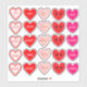 Beautiful personalized pink and red love hearts Stickers. A lovely 25 heart sticker collection of pink, red, magenta and happy hearts for all occasions. Available in several sizes. Joy, sweet, love, hugs and kiss texts can be personalized.