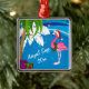 Personalized Pink Santa Flamingo Beach Christmas Metal Ornament