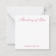 Personalized stationery enclosure notecard with a green gingham pattern in notes of dark deep and vibrant rose pink and bubble gum pink with the sentimental words "Thinking of You". Tuck it into a flower bouquet or meaningful gift. These minimal flower shop inspired enclosure cards bring a retro kitchen vibe to your most thoughtful moments.