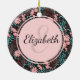 Personalized Pink & Teal Dark Floral Ceramic Ornament