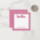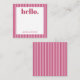 Personalized stationery enclosure notecard with a pink pin stripe pattern in notes of dark deep and vibrant rose pink bubble gum and white with the sentimental words "hello". Tuck it into a flower bouquet or meaningful gift. These minimal flower shop inspired enclosure cards bring a retro kitchen vibe to your most thoughtful moments.