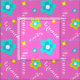 Bold flower named repeat patterned fabric in bright pink, yellow, aqua and white. Ideal for making a really personal sewing project for girls. Customize with your own choice of name currently reads Veronica. The background colour can also be changed if required currently pink. Original art and design by Sarah Trett.