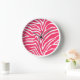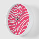 Pink White and BlackZebra White Dots Custom Wall Clock - Your Name - or change to read whatever you like. You Choose Background colour - pink changes to any colour. To change colour click customize then edit and use the last tool on the drop down menu to choose from the colour swatches or enter your RGB code for a one of a kind designer clock! A single animal print accessory will create an instant focal point. This zebra stripe clock will draw the focus to the centre of the wall and contrast any neutral colour pallet and anchor the room's design.