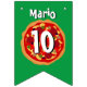 Personalized pizza Birthday party bunting flags. Personalize with your own name and age. Fun design for kid's celebration. Big round pizza illustration with pepperoni, olives, tomato, cheese and mushrooms. Italian food design for pizza lovers. Customizable Italian flag colours.