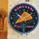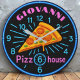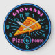 personalized pizzeria neon custom pizza house retro diner wall clock, pizza lover gift, home pizza bar clock, Italian restaurant decor, glowing pizza timepiece, vintage kitchen clock, pizza themed wall art