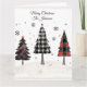 Send warm holiday wishes with this cozy personalized Christmas greeting card featuring three plaid Christmas trees in classic buffalo check and rustic neutrals. The soft watercolor snow scene, hand-drawn snowflakes, and farmhouse style create a charming winter design your loved ones will adore.