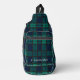 Custom Clan Black Watch tartan blue green and dark grey check design sling bag. Perfect gift for family, dad, husband or other special gift giving occasions. Celebrate all things tradition and family clan with this cool Clan Black Watch tartan print sling bag. Add a name by clicking the "Personalize" button above or delete the placeholder name to make this a plain tartan sling bag.