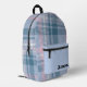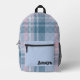 Lightweight and durable, our custom all-over-print Backpack is just what you need. The spacious interior is ideal for travel, school, gym, or any mobile storage need. Bring your stuff with you in style! Features Adjustable padded shoulder straps, two chambers on the inside for laptop storage, mesh side pockets and an identification label.