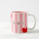 Personalized Playful Red Heart & Pink Stripe Two-Tone Coffee Mug