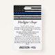 Thin Blue Line Police Officers Prayer Card - USA American flag design in Police Flag colours, distressed design .