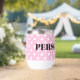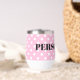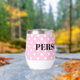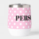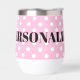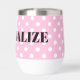 Personalized polkadot pattern wine glass tumbler. Cheerful design drinking glass. Great for Birthday, wedding and more. Pink or custom colour with white polka dot print.