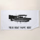 This white beach towel features an illustration in black of a pontoon boat floating on a lake. Use the fill-in-the-blank template to personalize this towel with your boat's name or your favourite pontoon boat captain's name. This beach towel makes a great gift for pontoon boat owners. Find more gifts and gears for pontoon boat owners in the Ponton Boat Paradise Zazzle shop.