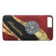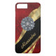 Personalize this pretty chic and elegant girly dark red vintage damask pattern design, with a crystal rhinestone jewel bling and black and gold swirl ribbon pattern graphic with her name or monogram initials to the customizable text templates to create a special unique stylish case to protect your device. This chic elegant sophisticated feminine red retro damask graphic design, would be great for women who like romantic red and jewellery easily add your own name or text to the stylish elegant colour ribbon template. Visit the CUSTOMIZEDSKINS STORE for matching cases. PLEASE NOTE the golden colour is not metallic, and does not contain real diamonds or crystals.