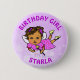 Adorable Purple and pink "Birthday Girl" button African-American fairy. Whimsical folk art style birthday button.