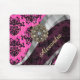 Pretty bright fuchsia pink colour and black personalized feminine girly vintage damask pattern and modern silver pewter grey colour swirl design with monogram name or text initial templates and faux diamond crystal rhinestone antique jewel graphic. Easily create your own unique colourful personal custom monogrammed chic elegant tradition design product for her. PLEASE NOTE the silver grey colour is not metallic or the gemstones real.