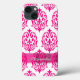 Personalized pretty hot pink and white damask Case-Mate iPhone case
