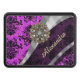 Pretty bright purple or magenta and black personalized feminine girly vintage damask pattern and modern silver pewter grey colour swirl design with monogram name or text initial templates and faux diamond crystal rhinestone antique jewel graphic. Easily create your own unique colourful personal custom monogrammed chic elegant tradition design product for her. PLEASE NOTE the silver grey colour is not metallic or the gemstones real.
