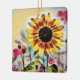 Pretty Yellow Sunflower in Colourful Field of Flowers Digital Art Holiday Christmas Tree Ceramic Ornament - Personalize the back with a name and year or any text that you wish to add.