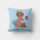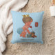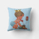 Personalized elegant vintage little prince blue throw pillow. A beautiful vintage illustration of a cute and adorable baby boy with stylish blue diaper and a gold crown. He is talking on an old red retro telephone telling you that he is on his way! He is holding a little blue suitcase and his quirky teddy bear is leaning against it - he's all packed up and ready for his arrival! The background is a pretty blue colour with grey customizable text. Perfect for a baby shower gift / new baby gift. If you need any assistance customizing your product please contact me through my store and I will be happy to help. I have matching products in my store.