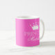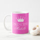 Personalized princess mug in pink with custom name. Cute Birthday gift idea for women and girls. Elegant script text with crown symbol.