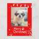 Customize this charming postcard with a photo of your darling puppy, adding a personal and heartwarming touch to your Christmas greetings. The design features a vibrant red background adorned with Christmas lights and snow illustrations, capturing the essence of holiday spirit.