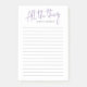 These customizable notepads features the text "all the things" in a handwritten script with a spot to enter your name below. Easily customize the colour of the name by selecting customize further!