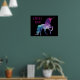 A colourful silhouette of a magical unicorn in shades of blue and purple is personalized with your name and the word Room in bright pink trendy font. The background is black to showcase your name and the image. Using the on-screen edit tools you can easily change the font colour, the font style and size to create your own unique poster for your dorm or bedroom.