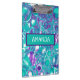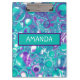 Turquoise, purple and teal pour painting cells marble like swirls abstract art custom name personalized clipboard.