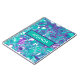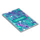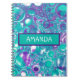 Turquoise, purple and teal pour painting cells marble like swirls abstract art custom name personalized notebook.