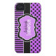 Personalized Purple, Black Striped Polka Dots Case-Mate iPhone Case